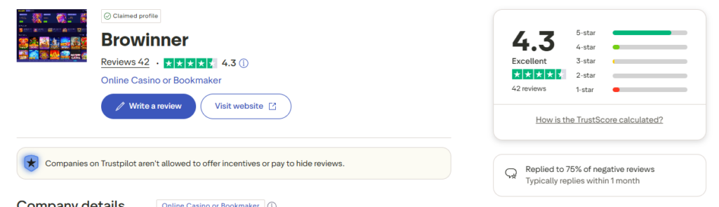 A flashy design is nice, but does the casino deliver? We checked the user feedback on Trustpilot to see if Browinner is as good as it looks.
