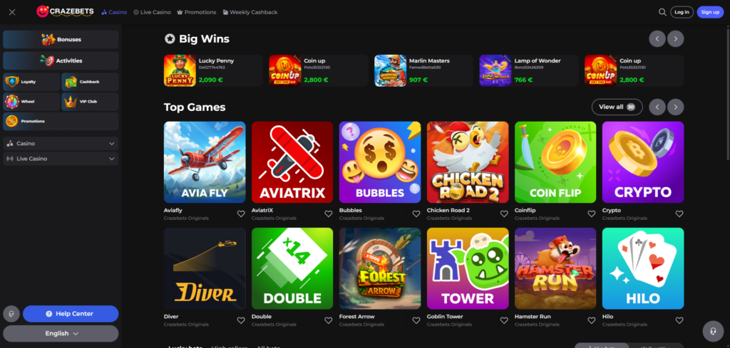 Crazebets offers thousands of slot titles alongside table games such as blackjack, roulette, baccarat, and various poker formats. Live dealer sessions and mini-games complete the portfolio, while regular tournaments add competitive reward opportunities.