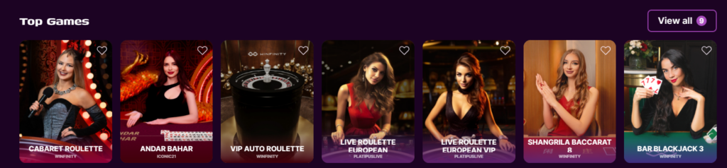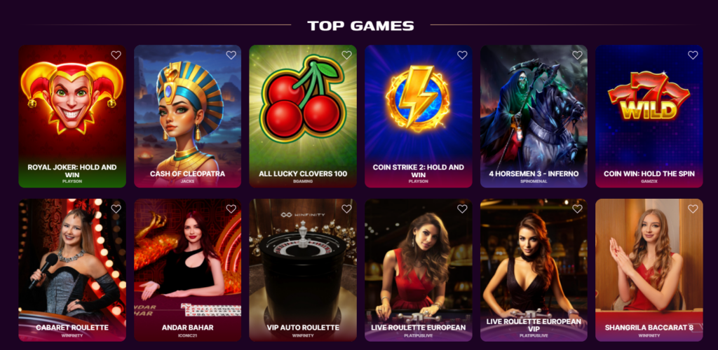 This casino presents a broad range, including over 500 slots 🎰, various table games 🃏, poker ♠️, roulette 🎡, and a dynamic selection of live casino titles 🕹️. Mini-games and exclusive show-style events add even greater variety.