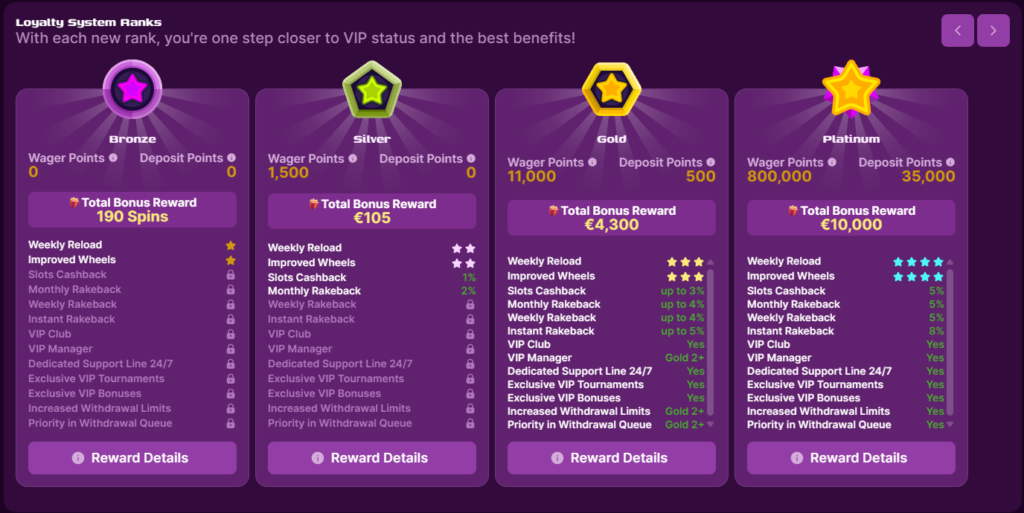- 🌟 Loyalty program providing weekly and monthly bonuses based on activity levels