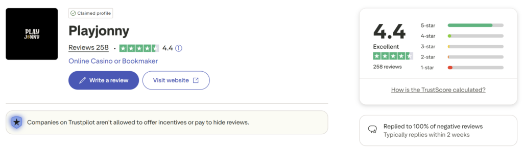 A casino’s reputation can change quickly, so we checked the most recent reviews for Playjonny on Trustpilot. The trend is undeniably positive.
