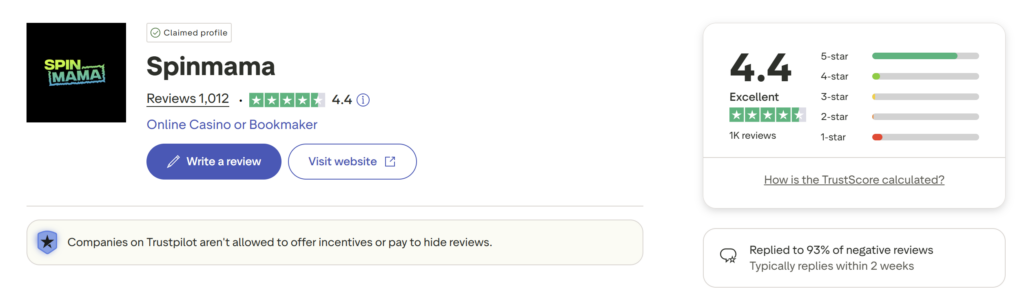 We have all read those nightmares about casinos locking accounts for no reason. Fortunately, Spinmama seems to be free of such drama. A quick look at their Trustpilot profile reveals a very professional operation.