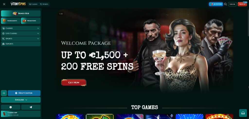 TonySpins impresses with a vast and varied game selection, featuring more than 5,500 unique titles. Renowned studios such as Pragmatic Play, Evolution, Yggdrasil, NetEnt, and Spinomenal contribute to this expansive library. There is a strong mix of genres, including slots, live dealer tables, crash games, and instant-win options.