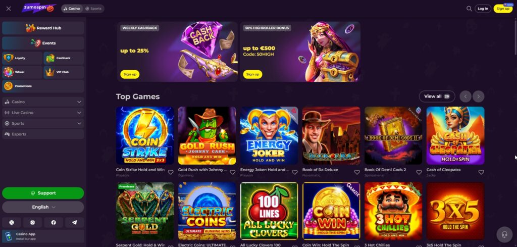 ZumoSpin distinguishes itself with a massive library of over 5000 games spanning numerous genres. Additional strengths include rapid withdrawal processing, flexible daily cashback rates, and robust customer support. The combination of leading and boutique software providers results in unmatched quality and variety for players.